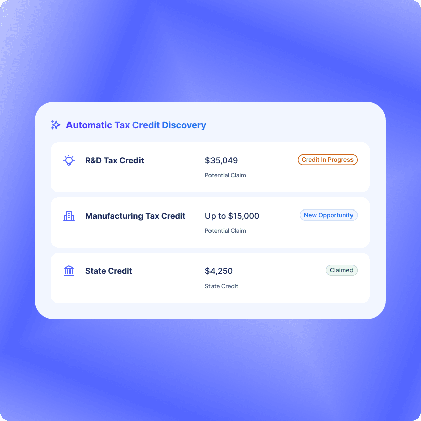 We continuously scan and surface every tax credit your business qualifies for—automatically, as your company evolves.